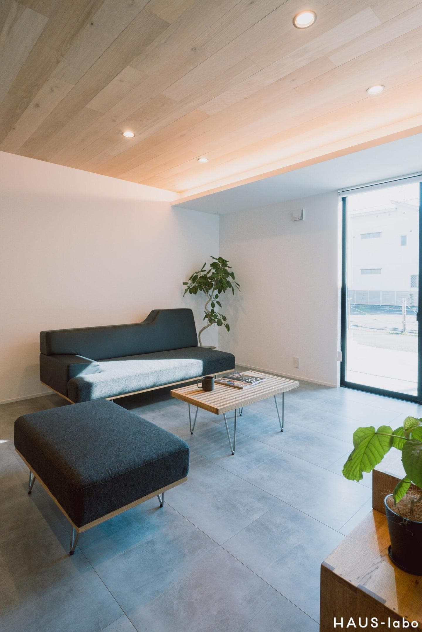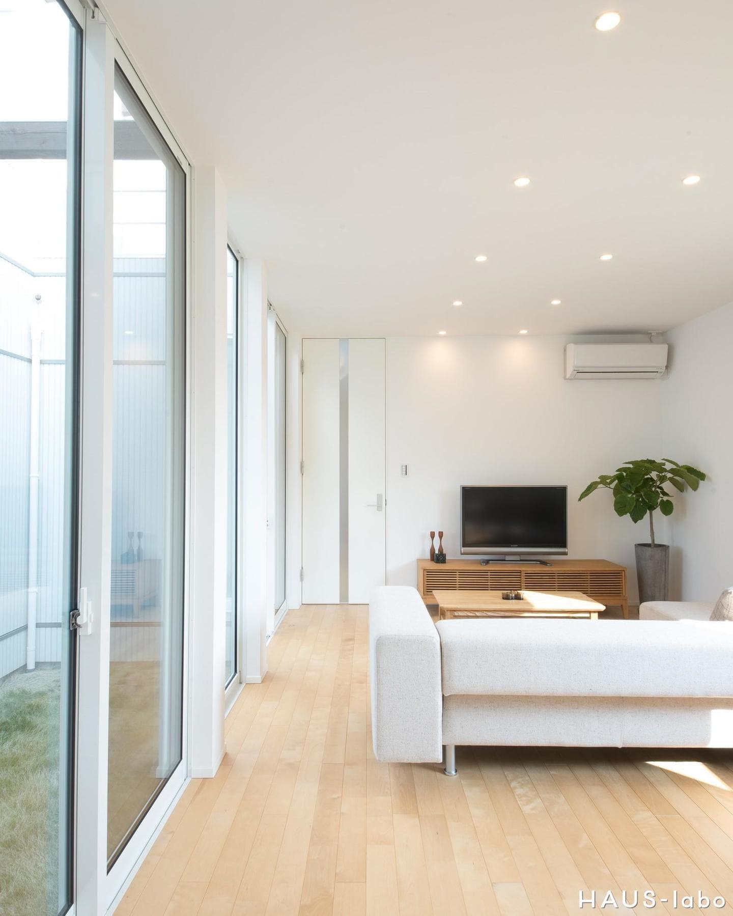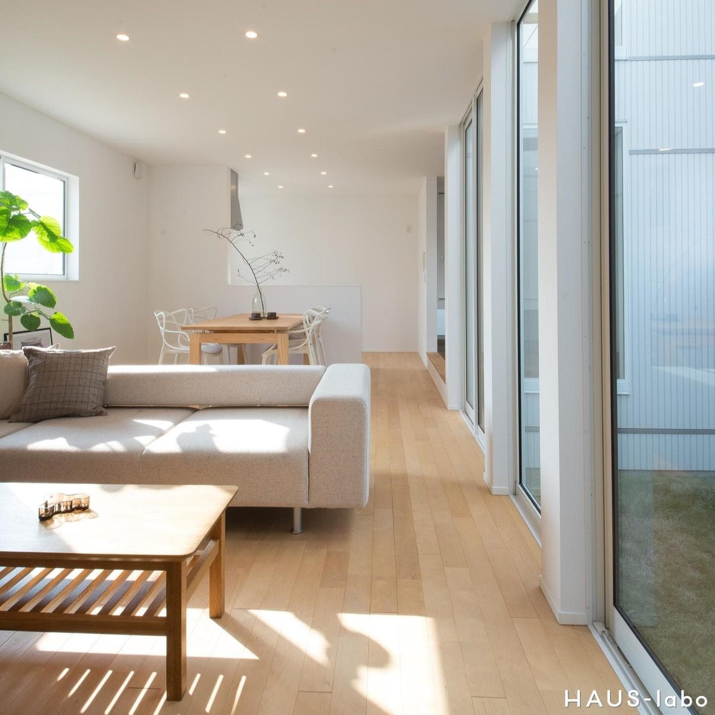 シンプルで飽きのこない空間を上質な床材やスクエアなサッシを