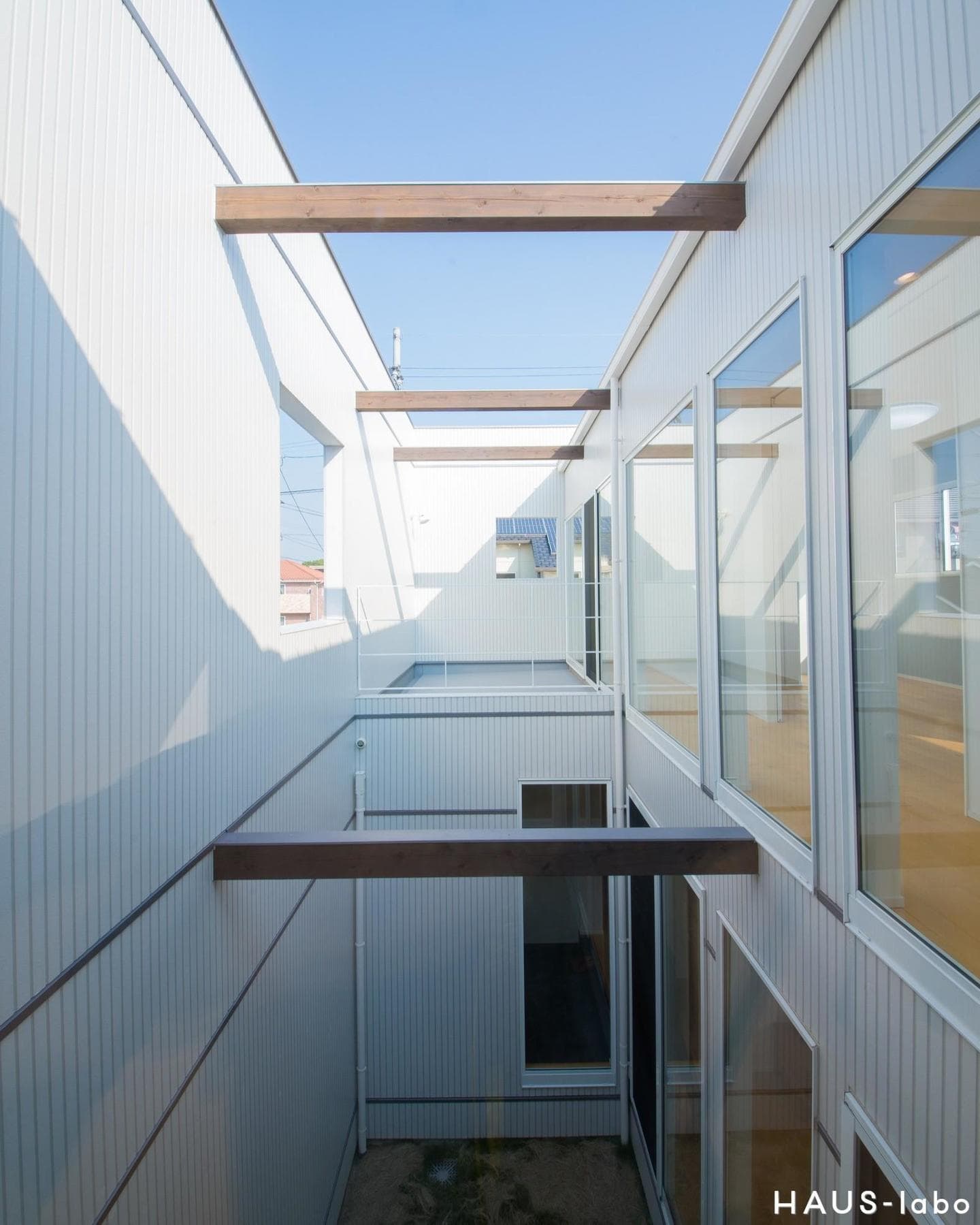 美しさを引き立てる中庭にはたくさんの光が差し込みつつもプライバシーは確保した設計で
